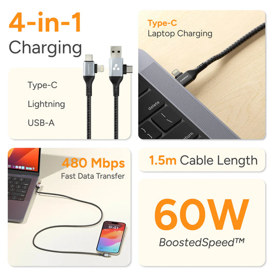Ambrane 4 in 1 Fast Charging Cable (AC4CL-15)