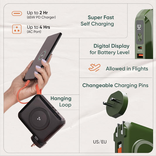 AerosynQ MagSurge 10000mAh Qi2 Certified Magsafe Wireless Fast Charging Power Bank for iPhone