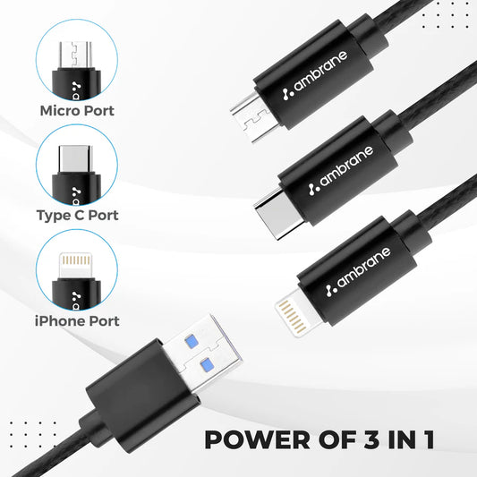 Ambrane Trinity-111 is a 3-in-1 charging cable